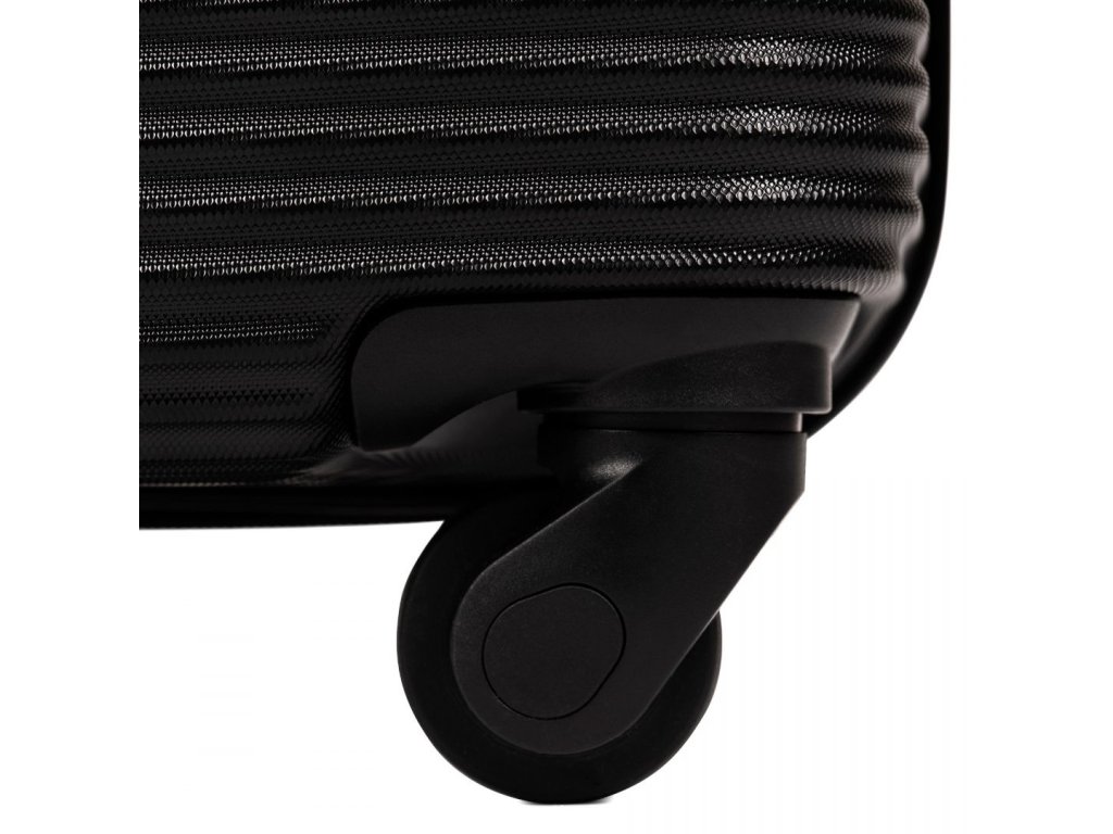 Moderní kufr z tvrdého a odlehčeného ABS (Akrylonitryl, Butadien, Styren) plastu, ustojí i případný tvrdý dopad na zem a vydrží i jinou velkou zátěž.