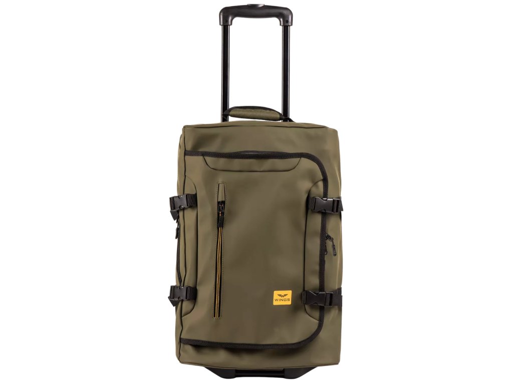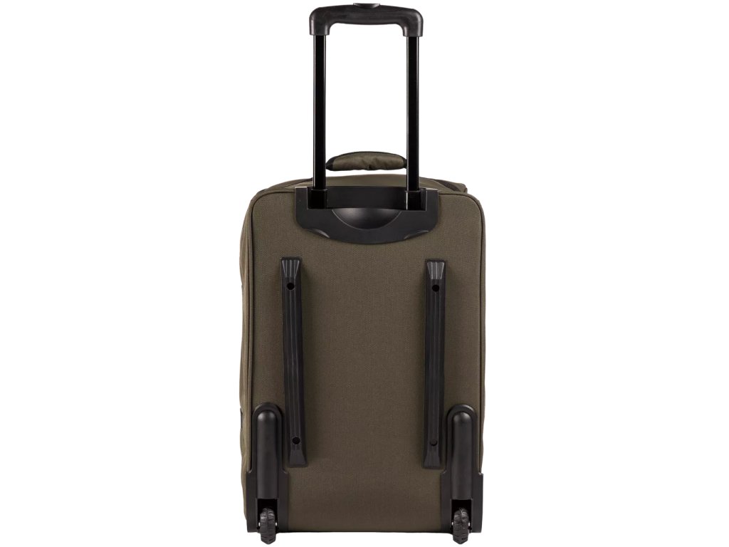 Kufr PARTRIGE je vybaven dvěma odolnými kolečky, která zajišťují plynulé manévrování i při plném zatížení. Vyztužené dno a přídavné nožky na zadní a spodní straně brašny ji chrání před nečistotami a poškozením. Černá nastavitelná teleskopická rukojeť umožňuje snadné přizpůsobení výšce uživatele, což zvyšuje komfort pohybu. Vnitřní kapacita cca 43 litrů, kompresní popruhy a četné kapsy, včetně menší vpředu na drobnosti, zajišťují promyšlenou organizaci a bezpečnost uložených věcí.