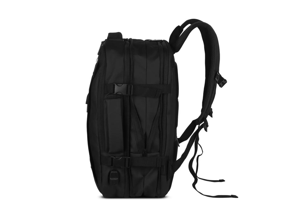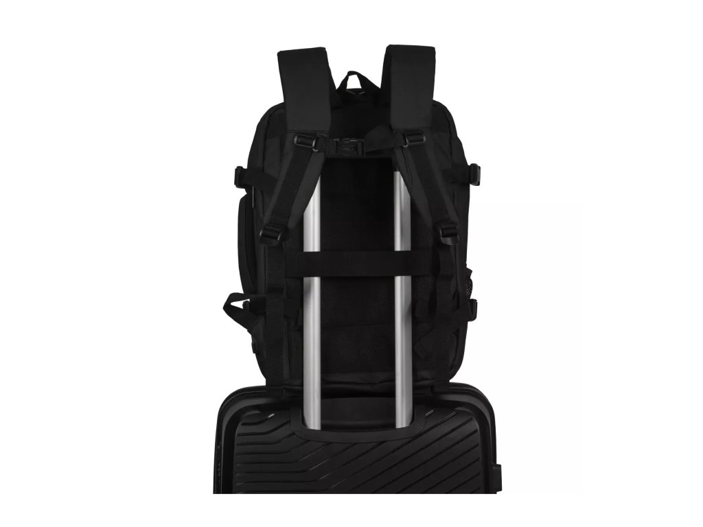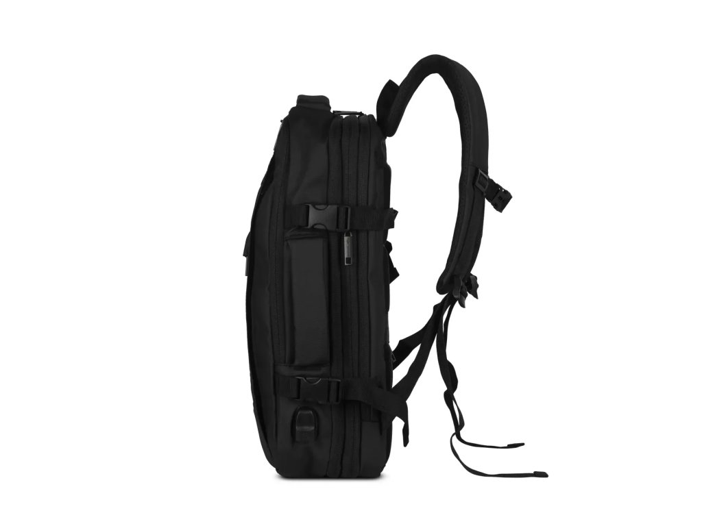 Model WINGS OSPREY OSP002 je batoh s taštičkovou funkcí, který zaujme svou všestranností. Díky dodatečnému rozšíření hlavní komory získává dalších 5 litrů kapacity, což z ní dělá ideální řešení jak pro každodenní použití, tak pro delší cesty. Jeho černá barva mu dodává moderní vzhled a materiály použité při výrobě zaručují dlouhodobé používání. Batoh má ergonomické měkké popruhy a záda vyztužená měkkým materiálem pro cirkulaci vzduchu, což zvyšuje jeho funkčnost a komfort nošení. Wings OSP002 má USB výstup. Promyšlený interiér s mnoha přihrádkami a vnitřními kapsami zajišťuje perfektní organizaci na cestách. Batoh je vybaven úchytem na rám kufru, umístěným na zádech, pod kterým je skrytá kapsa na doklady nebo důležité předměty.