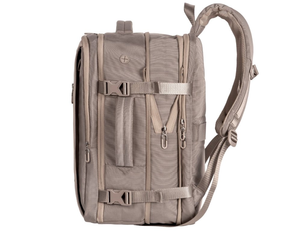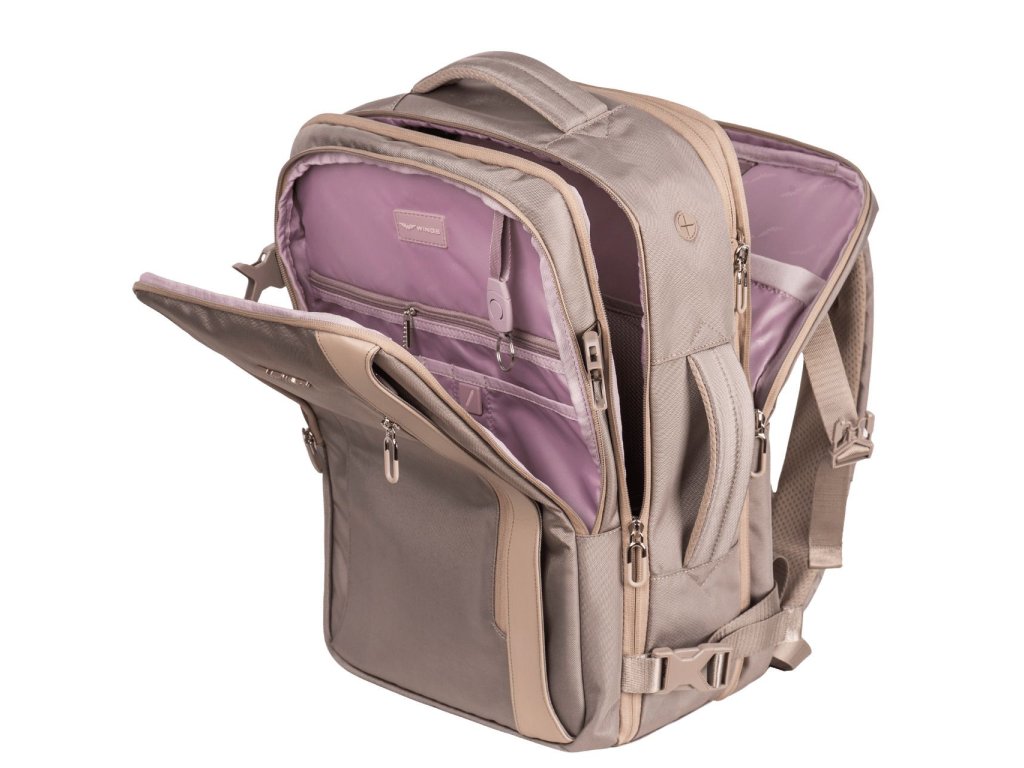 Batoh má nastavitelné výztuhy a pásek, který vám umožní připevnit batoh k výsuvné rukojeti kufru, což vám usnadní cestování. Textilní rukojeť pro přenášení batohu. Batoh má velký hlavní kapsu a přední kapsu. Batoh se otevírá zipem.