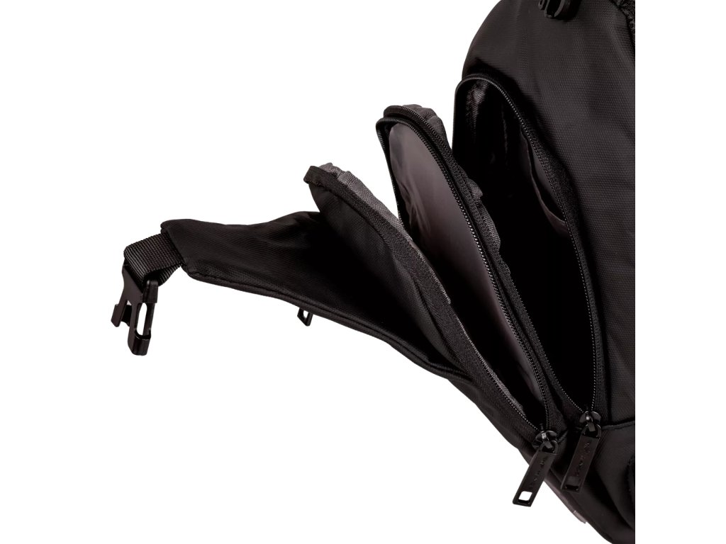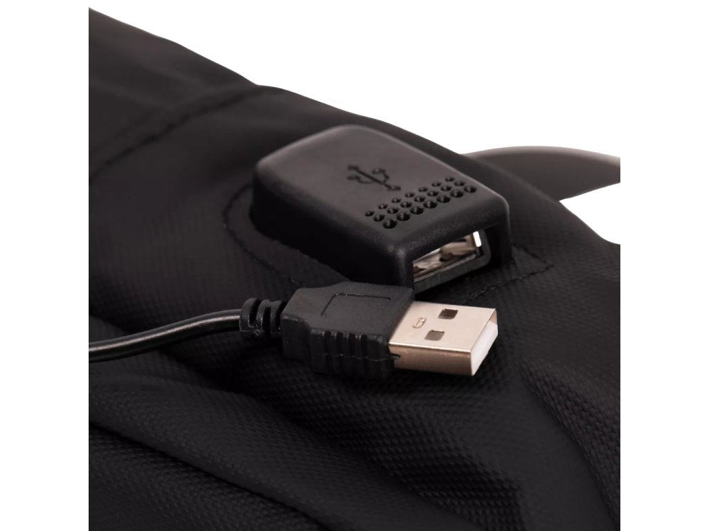 Batoh má další kapsy: kapsu na zip, otevřenou kapsu, malou přední kapsu a integrovaný USB port s kabelem. Díky nastavitelnému a odnímatelnému popruhu jej lze nosit různými způsoby, což z něj činí pohodlné řešení pro každodenní použití i cestování.