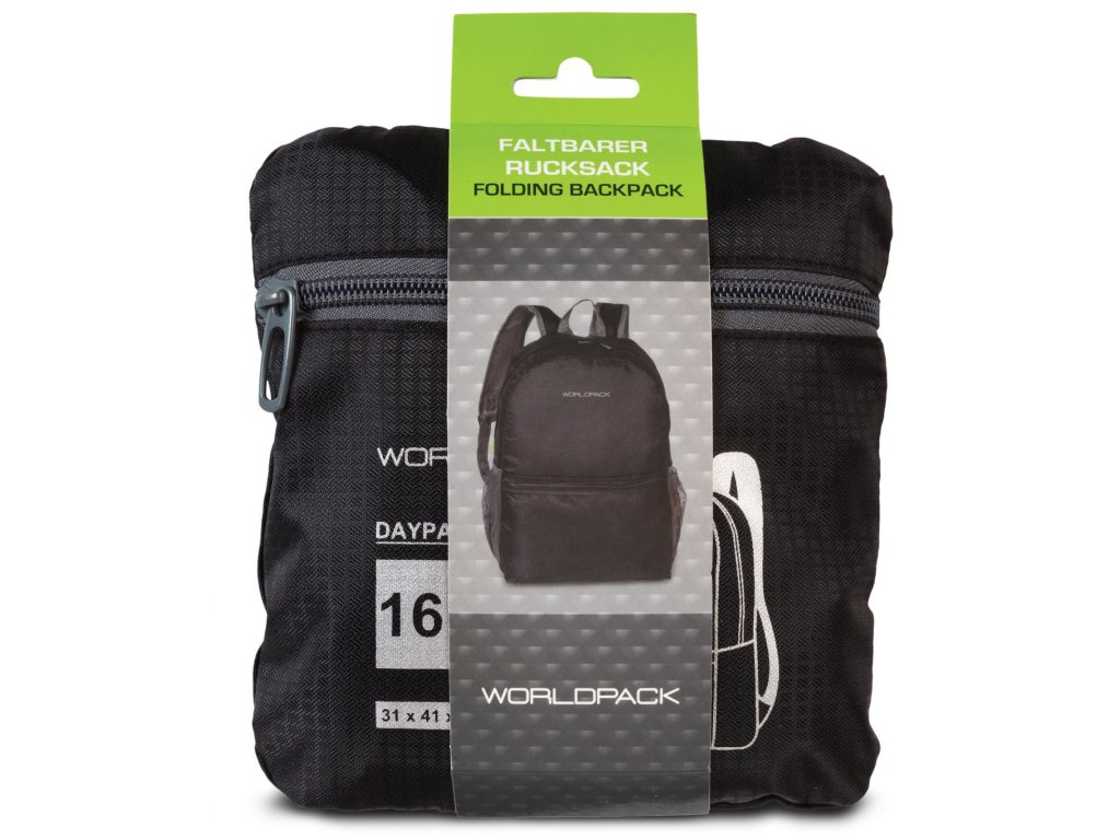 Lze zcela složit a sbalit do vlastní kapsy, která je připevněna k batohu.